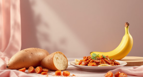 바나나, 빵, 감자, 고구마처럼 전분이 풍부한 음식은 위 벽을 부드럽게 감싸고 자극을 완화합니다. - 미지근한 물 천천히