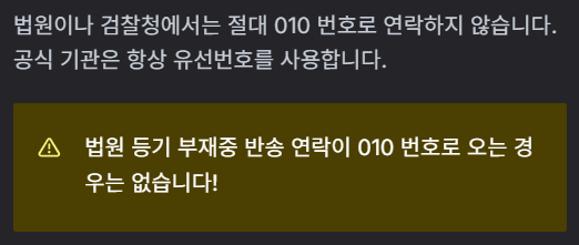 특히 010 번호 법원 등기 부재중 반송 보이스피싱 수법에서는 상대방 이름과 개인정보를 이미 알고 접근하기 때문에 더더욱 주의해야 합니다.