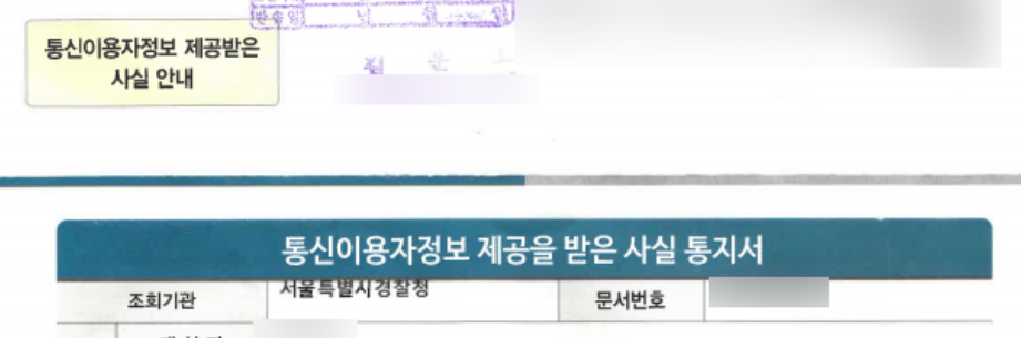 통신이용자정보 제공을 받은 사실 통지서 라는데 아무튼 큰 내용이 아니여서 다행이었습니다.