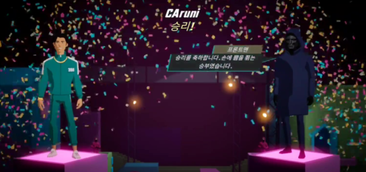 이 게임은 '오징어게임' IP의 요소들이 적재적소에서 나타나는 게임으로 '폴가이즈'와 같은 라스트맨 스탠딩(최후의 1인을 가리는 방식) 형식으로 진행됩니다.