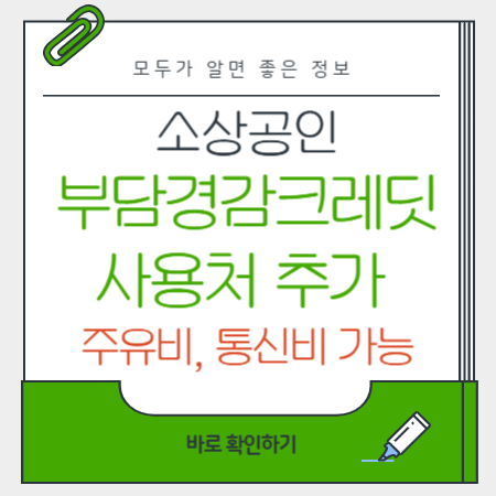 소상공인 부담경감 크레딧으로 주유비, 통신비, 공과금까지 스마트하게 절감하세요.