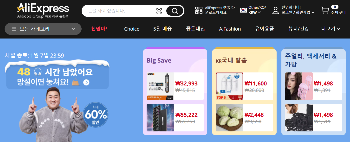 중국 기반의 글로벌 쇼핑몰로 저렴한 가격대의 제품을 구매 가능한 사이트입니다.