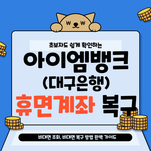 아래에서 대구은행(아이엠뱅크) 휴면계좌 조회부터 해제까지 자세히 알아보도록 하겠습니다.