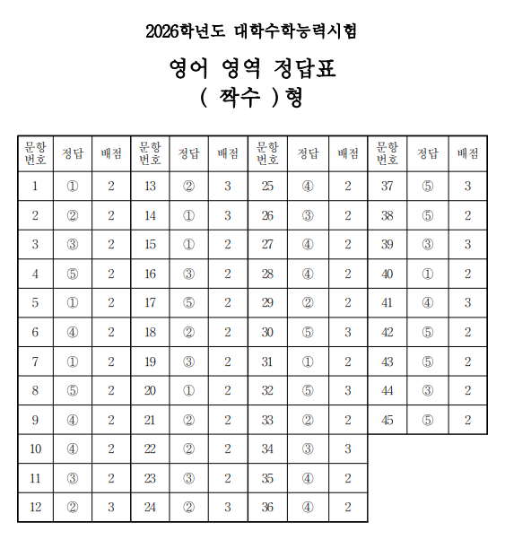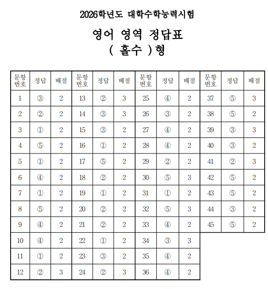 2026학년도 대학수학능력시험 영어 영역 문제지와 정답지가 공개되었죠.